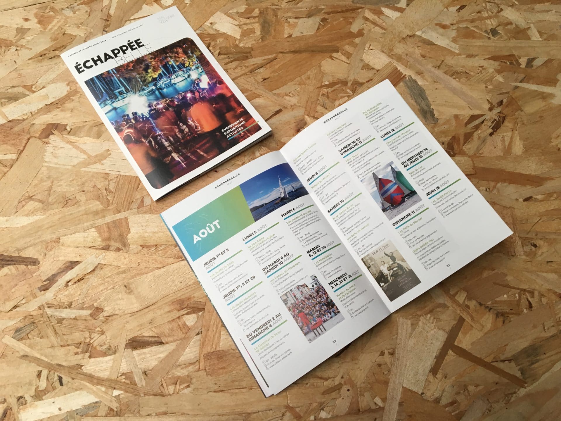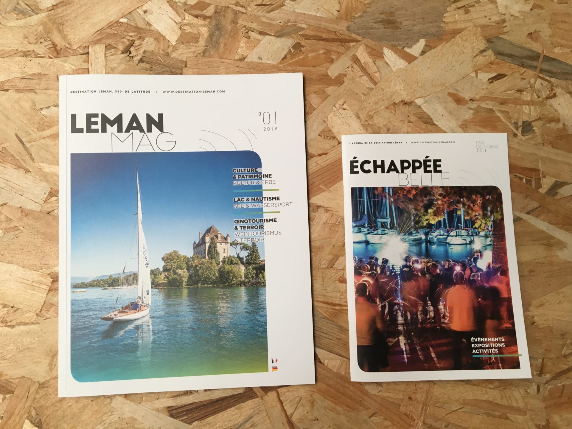 Conception graphique et mise en page des outils de communication : magazine Destination Léman, guides Léman Pratique.