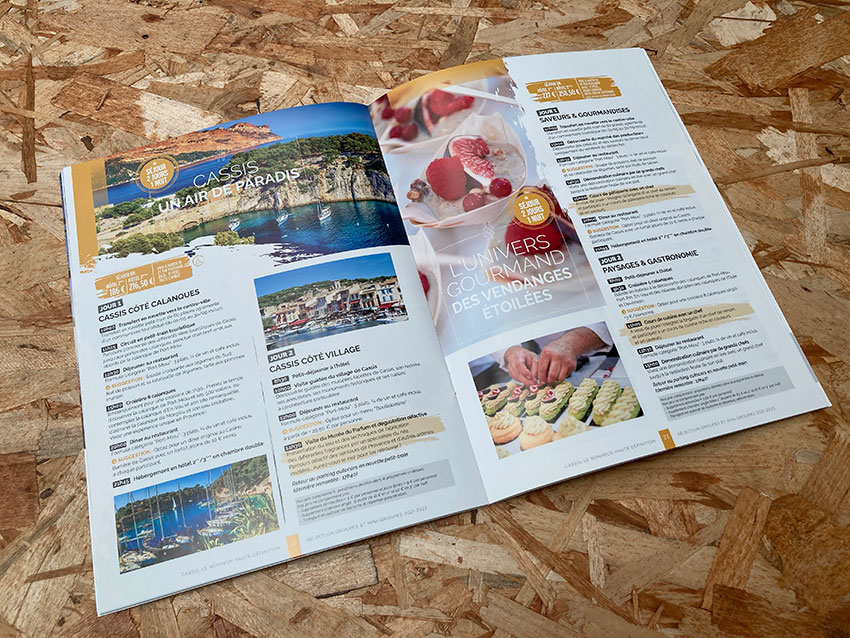 Accompagnement de l’Office de Tourisme de Cassis pour la réalisation de 3 brochures destinées aux groupes et à la clientèle individuelle.
